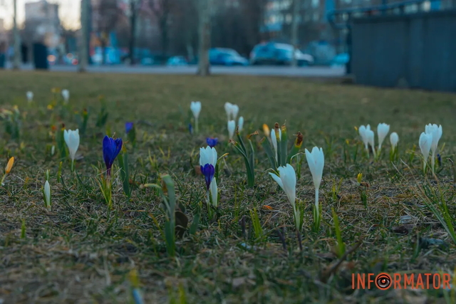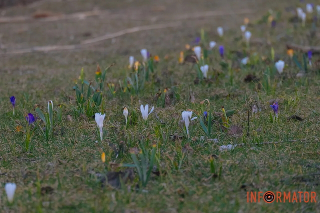 Для жителей Днепра массовое цветение крокусов символизирует настоящий приход весны.