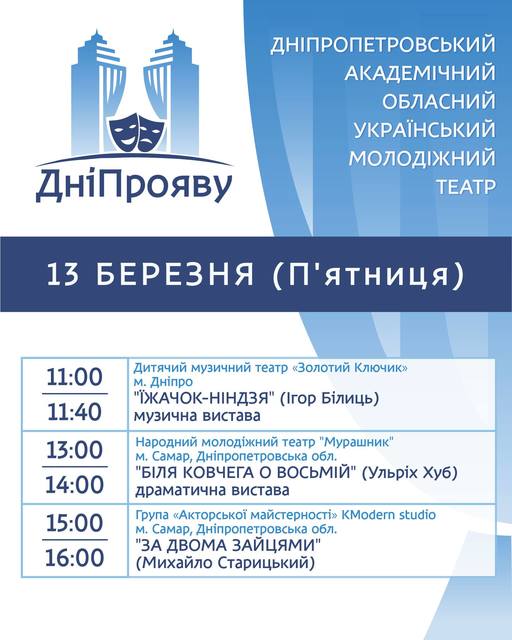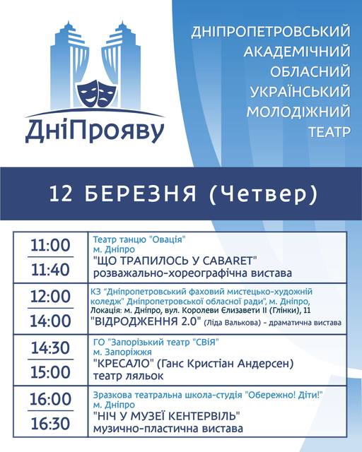 Він відбувається 11-14 березня у Обласному молодіжному театрі на вулиці Володимира Мономаха, 21.