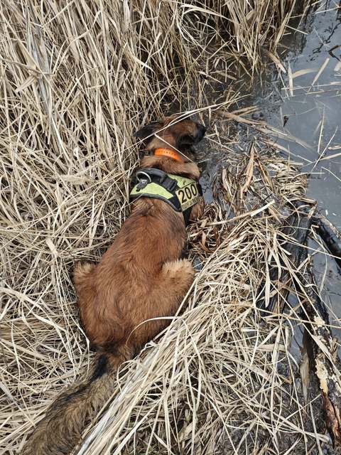 В якийсь момент, Мара явно почула запах, почала метатися та стримко рвонула в жахливий щільний очерет. Ми бачили, як наполеглива та сильна собака, буквально, ломає очерет в пошуках джерела запаху.