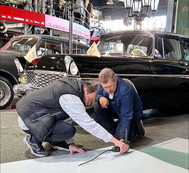 А ще сьогодні створювали підсвічення всередині салону згорілого рейсового автобусу та компонували 10 епізодів, про які ви зможете дізнатися під час екскурсії виставковим проектом «Живі сторінки історії міста: час війни».