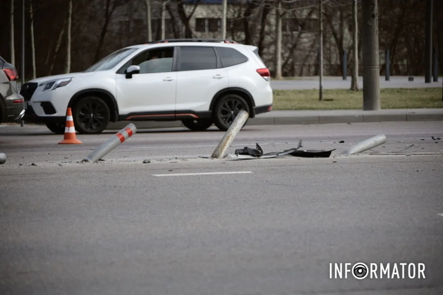 BMW продолжила движение и врезалась в дорожные столбики. Машина получила повреждение, из-под автомобиля на дорогу вылилась смазка на асфальт. Предварительно обошлось без пострадавших.