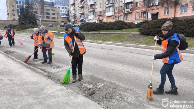 «Из-за большого количества противогололедных смесей на некоторых дорогах мы сначала применяем ручную работу, а затем дополнительно ночью там еще проезжает специальная техника, убирающая остатки песка. В общей сложности этой зимой мы использовали более 36 тысяч тонн противогололедных материалов. Это втрое больше, чем в прошлые годы. Соответственно и при уборке нагрузка на людей и технику тоже увеличилась. В настоящее время выполнено уже более 50% запланированных работ. Кроме того, каждый день на улицах города работает около 50 единиц спецтехники. Они убирают дороги, тротуары и пешеходные зоны, которые включены в список обслуживания. Таких объектов у нас 553, и в большинстве своем это те улицы, по которым курсирует общественный транспорт. В общей сложности это площадь более 11 млн м кв», - отметила начальница управления по благоустройству города департамента благоустройства и инфраструктуры Днепровского городского совета Светлана Литвинова.