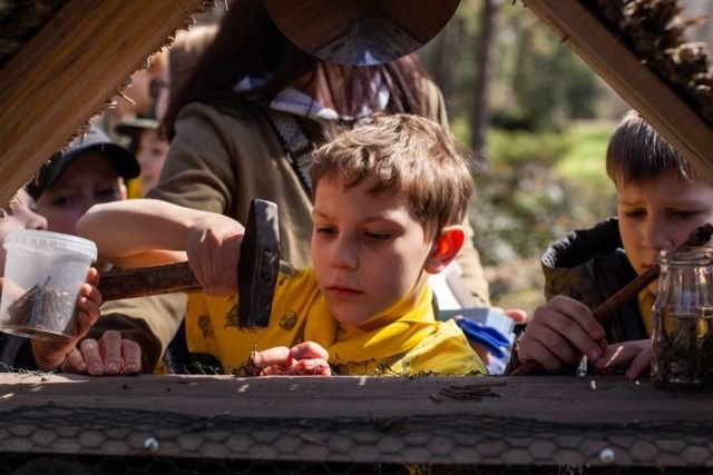 А також займалися ремонтом готелю. Але цей готель розрахований не на людей, а був спеціально створений у Ботсаду для корисних комах.