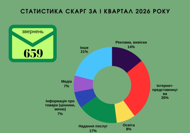 За перший квартал 2026 року до уповноваженої із захисту державної мови надійшло 659 скарг щодо порушення мовного законодавства. Про це повідомила пресслужба відомства в четвер, 2 квітня.