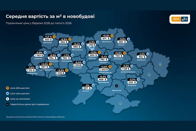 Аналітики зазначають, що інтерес до новобудов зростав майже по всій країні. Для порівняння, у Чернігівській області цей показник становить +22%, а в Черкаській – +21%. Водночас у деяких західних регіонах спостерігається зворотна тенденція: у Львівській області попит впав на 7%.
