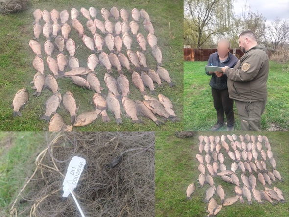 Порушник виловив 70 екземплярів карася сріблястого загальною вагою 24,7 кг. Збитки, завдані рибному господарству України, становлять 110 тисяч грн.
