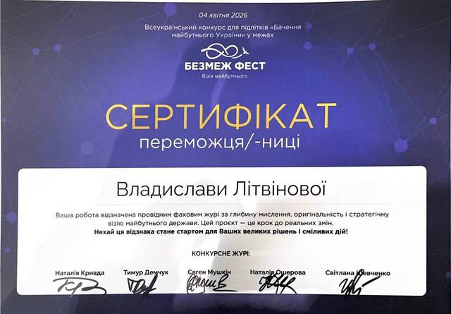 Наш проєкт «Прямуй за Сонцем!» та конкурсний постер отримали найвищу оцінку журі на фестивалі БЕЗМЕЖ-ФЕСТ. Для нас ця перемога — не просто грамота, а підтвердження того, що Україна була, є і буде сильною космічною державою.