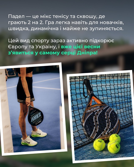 Как сообщает КУСТ, уже этой весной в Днепре откроют три площадки под открытым небом для игры в падел. А до конца года таких площадок будет еще девять, причем большинство – крытых, для игры в любую погоду.