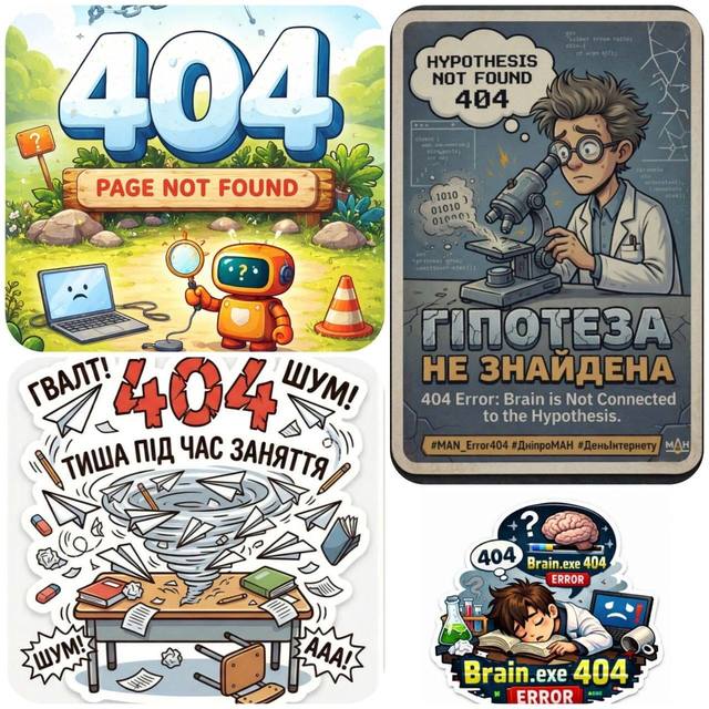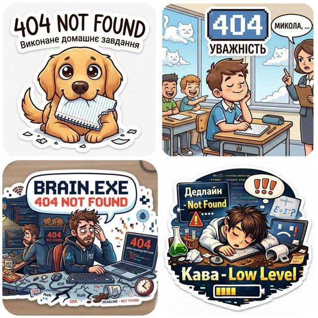 Наші вихованці довели, що навіть статус «Not Found» - це привід для крутого дизайну та влучного гумору. Тепер наші чати поповнилися ексклюзивними стікерпаками, які зрозуміє кожен науковець та айтішник: