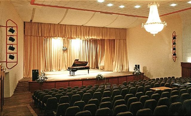 Кстати, изначально в зале была и оркестровая яма. И это был ад для исполнителей-студентов. Акустика была ужасная, так как весь звук поглощала оркестровая яма. В первый же год ее закрыли. Мой курс пианистов был первым выпуском в этом здании. Новые неразыгранные рояли не добавили нам счастья. А сверху зала был спортивный зал и все прыжки через козла и баскетбол вносили новый свежий ритмический рисунок в момент репетиций и экзаменов».