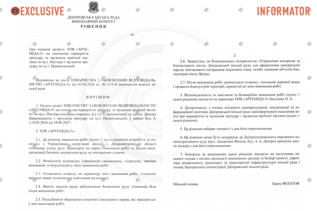 Запланований термін робіт – з 19 травня 2026 року по 19 червня 2027 року. Про це повідомляє Інформатор з посиланням на проєкт рішення виконкому Дніпровської міської ради.