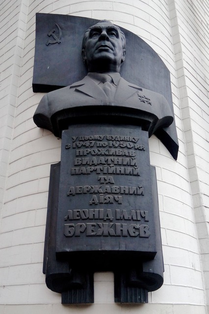 Барельеф был установлен на доме по Крутогорному спуску, 1, в котором в 1947-50-х годах проживал Леонид Брежнев.
