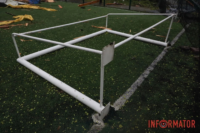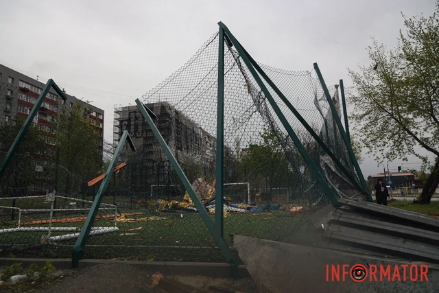 Непогода на левом берегу Днепра: киоск остался без крыши, обломки разбрасывало по футбольному полю