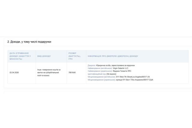 В обновленной декларации говорится, что Филатов указал, что вернул средства за билет на свой суборбитальный полет в космос. И получил 7 миллионов 661 тысячу гривен дохода. Это эквивалентно по нынешнему курсу 171 тысяч долларов США. Таким образом, Филатов практически не потерял вложенные ранее деньги в билет.