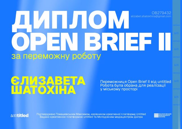 Open Brief — це формат відкритого брифу для дизайнерів. Його організатори публікують технічне завдання, приймають роботи та обирають найсильнішу ідею, яку разом з автором допрацьовують та реалізовують в міському просторі. Загалом до шорт-листа конкурсу увійшли 7 робіт, а роботи трьох авторок (серед яких і Ліза) вже розмістили у салонах транспорту та на міських локаціях!