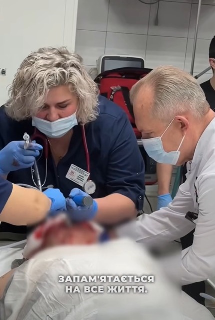 Досвідчений нейрохірург Олександр Марченко, не вагаючись, екстрено взяв її в операційну, щоб не втратити шанс. Проведена багатогодинна надскладна операція. Анестезіолог Петро Голота та операційна сестра Ольга Павліченко витримали найтяжчу операцію під час війни в своєму житті.