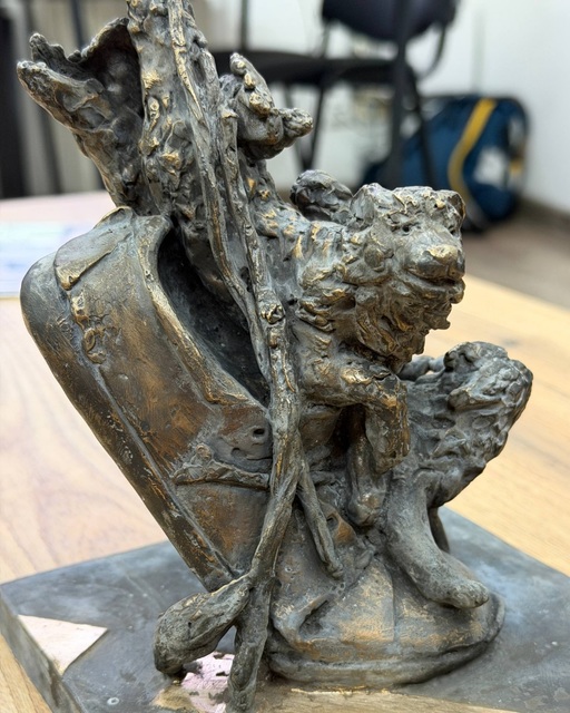 Мініскульптуру створили скульптори Надія Отряжа та Федір Бушманов. Як і інші мініскульптури проєкту, вона пройшла шлях від ескізу та ліплення до лиття у бронзі та фінальної обробки.