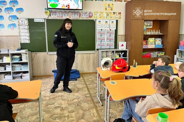 У закладах освіти міста Дніпро триває проведення Днів цивільного захисту за участі офіцерів-рятувальників громад. Фахівці ДСНС системно працюють із дітьми, навчаючи їх важливим правилам поведінки у надзвичайних ситуаціях. Цього разу завітали до початкових класів гімназії.