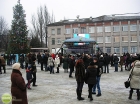 Не смотря на рабочий день и слякость, собралось достаточное число зрителей. Детей радовали конкурсами, взрослых - шутками о политике и эпидемии гриппа. Из местного колорита следует отметить сразу трех Дедов Морозов, символизирующих три района Днепродзержинска.