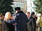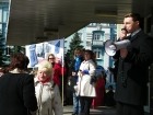 Минут через десять, когда все было готово к началу митинга, к митингующим подошла группа людей под предводительством члена исполкома Галины Куропятниковой и руководителя отдела внутренней политики исполкома Юрия Бережного. Исполкомовцы встали перед собравшимися представителями громады с вызывающими плакатами, которые призывали Виталия Куприя убираться из города и не мешать власти работать. Никто из присутствующих на митинге (из тех, кто пришел выразить свой протест нынешней власти) так и не понял, почему это Виталий Куприй должен уйти из города и почему он всех вокруг обманывает. Также никто не понял, по каким критериям видно, что власть работает. И если она работает хорошо, то как бы мы жили, если бы она работала плохо? На эти вопросы сторонники власти так и не смогли дать ответа. По просьбе милиционеров они отошли в сторону, правда периодически выкрикивали оскорбления в сторону митингующих и мешали нормально проводить мероприятие.