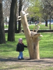 Появилась в парке и поляна с деревянными скульптурами. По словам директора, руководство специально их заказало у двух местных скульпторов. В дальнейшем эту поляну планируется расширять.