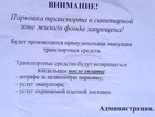 Текст объявления гасит: "Внимание! Парковка транспорта в санитарной зоне жилого фонда запрещена. Будет производиться принудительная эвакуация транспортных средств. Транспортные средства будут возвращаться владельцам после уплаты штрафа за незаконную парковку, услуг эвакуатора, услуг платной охраняемой стоянки. Администрация."