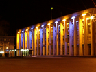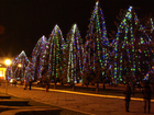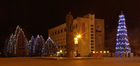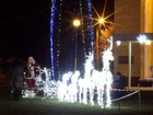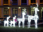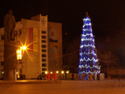 В этом году кроме главной гирляндами украсили все ёлки на площади Дзержинского, установили подсветку здания горсовета и на газоне разменстился Дед Мороз с оленьей упряжкой.