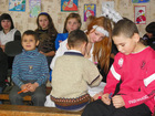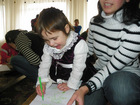Перед вручением подарков, детям раздали альбомные листы и фломастеры. Им предложили написать, или нарисовать свои пожелания на Новый Год. Одна девочка, в качестве подарка под елочку, пожелала мобильный телефон…и счастья.