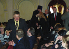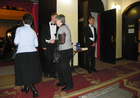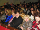 При входе в зал женщинам, в основном представительницам бюджетных организаций, двое юношей во фраках дарили коробки с конфетами. Уже в зале, до начала праздничного концерта, представительниц прекрасного пола приветствовали двое ведущих, при этом, не забывая дарить цветы.