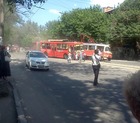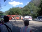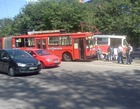 Совершая поворот, троллейбус остановился на трамвайном пути, чтобы пропустить транспорт. В это время по маршруту двигался трамвай с пассажирами. По неизвестной причине водитель трамвая вовремя не остановился. В результате столкновения один из вагонов трамвая сошел с рельс.