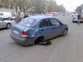 «Шевроле Авео» врезается в «Волгу», после чего водитель «Шевроле» полностью теряет управление автомобилем. Машина вылетает на пешеходный тротуар и буквально сносит четырех пешеходов, стоявших возле перекрестка и ожидавших разрешающий сигнал для перехода улицы.