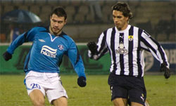 На 10-й минуте хозяева могли наказать нашу команду за такую расточительность. Косырин, находясь в штрафной, отбросил мяч немного вправо на свободного Фернандеса, но тот, к счастью для "Днепра", нанес неточный удар. И после этого момента преимущество полностью перешло к подопечным Протасова. Атака за атакой обрушивались на ворота "Металлурга", который безуспешно пытался хоть ненадолго зацепиться за мяч. Все попытки контратак наши полузащитники пресекали в зародыше, прессингуя соперника на его половине поля и выигрывая практически все единоборства.
