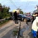 Чтобы избежать столкновения водитель «Ниссан» совершил резкий маневр, и на середине моста над железной дорогой его занесло.