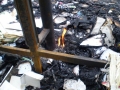 цветной металл, а один мужчина не растерялся - выбрал из пепла сверла и тут же рядом стал их продавать.