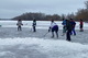 Хоккейный матч устроили на замерзшей реке.