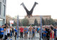 На протяжении всего вчерашнего вечера прямо в центре города несколько сотен молодых людей демонстрировали свои успехи в гимнастике и акробатике. Для этого на площадь перед «Пассажем» привезли турники, маты и тренажеры.