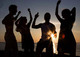 При свете ручных фонарей жильцы общежития, расположенного у перекрестка проспекта Аношкина (дом №112) и улицы Республиканской, общаются с руководителями КП «Днепродзержинского жилищного объединения» и городского предприятия «Облэнерго». Темно потому что, в общежитии, где уже 4 года, по словам жильцов, нет газоснабжения, отключили электричество.
