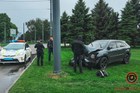 В Днепре возле «Вавилона» Lexus слетел с дороги и врезался в столб: пассажир авто