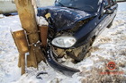 В пятницу, 7 февраля, на улице Каруны случилась авария. Автомобиль Daewoo Lanos врезался в столб.