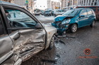 На проспекте Богдана Хмельницкого столкнулись Renault службы такси Uber и Geely: пострадала женщина