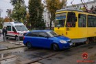 В Днепре на проспекте Яворницкого легковой автомобиль столкнулся с трамваем.