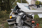 В субботу, 9 октября, на улице Криворожской автомобиль Mercedes Benz врезался в столб. В результате столкновения электроопора упала на автомобиль.