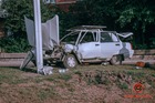 В Днепре на проспекте Поля Москвич врезался в столб: видео момента аварии