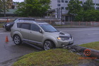 В Днепре на Сичеславской Набережной Geely вылетел с дороги и врезался в опору билборда