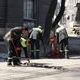Возле центра занятости на улице Медицинская работники ПП "Промремсервис" срывали старый тротуар и подготавливали основу под устройство нового.