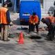 На пересечении улиц Сачко и Медицинской коммунальщики работали над поднятием канализационных люков на уровень земли.