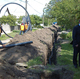 В течении первого рабочего дня было вырыто 200 метров траншеи и уложено в нее 200 метров из 360 новой полиэтиленовой трубы диаметром 110 мм.