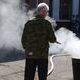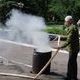 Одному из "пострадавших" школьников была оказана первая помощь, а во дворе тушили импровизированный пожар, устроенный из старых исписанных тетрадок, подожженных в металлической бочке.