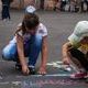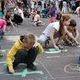 Все участники получили цветные мелки, с помощью которых они воплотили свои фантазии на асфальте.