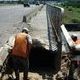 Работы ведет подрядчик - "Промремсервис". По проекту, здесь после засыпки размывов будет восстановлен склон - либо вымощен бетонными плитами, либо армирован и залит бетоном. Примерная продолжительность работ - месяц. Сегодня рабочие очищали проезжую часть улицы Ленина от песка, вымытого из-под моста.